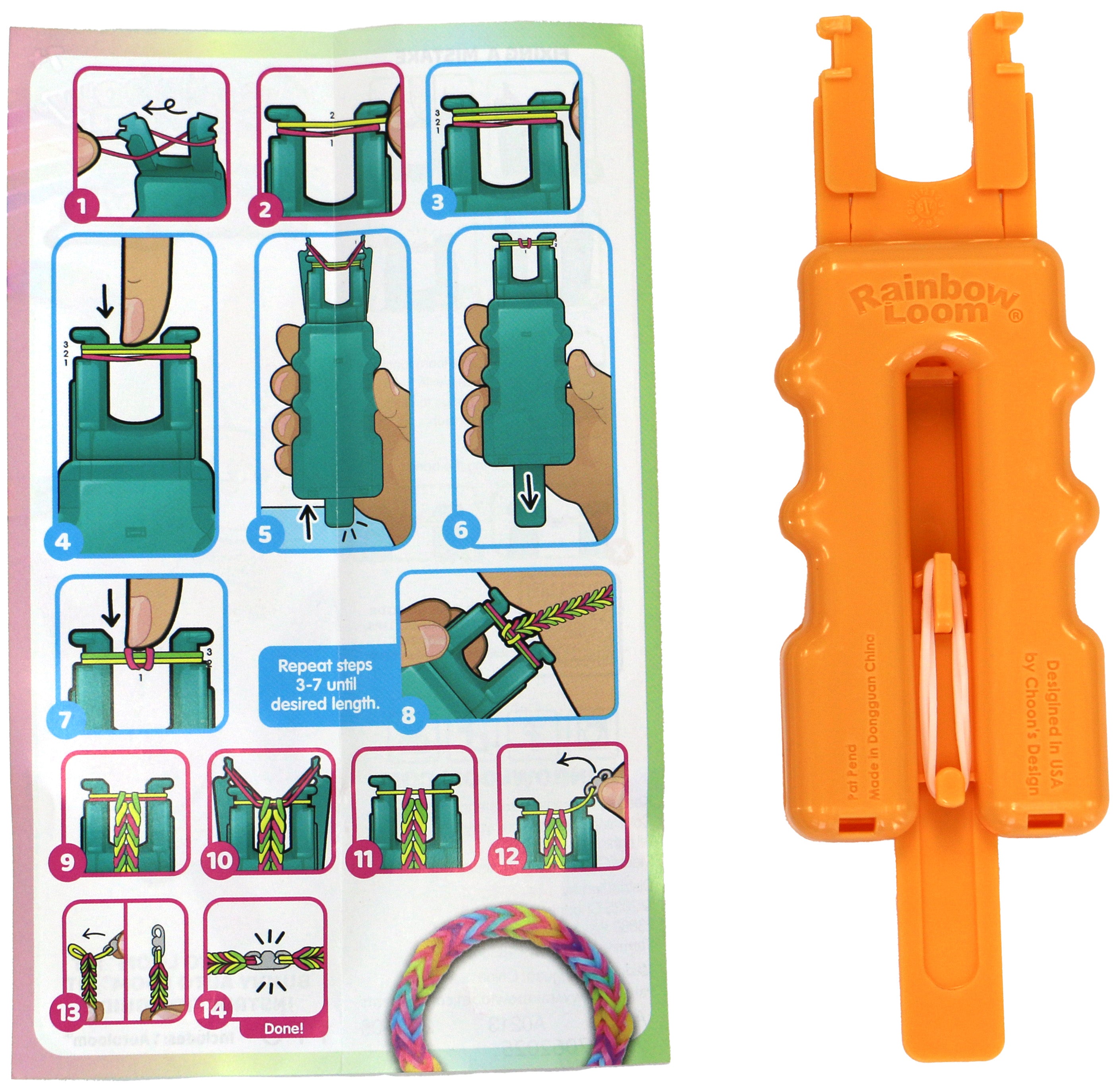 All authentic Rainbow Loom® products, including this product, have been certified to not contain harmful phthalates or other harmful substances, and meet U.S. government toy safety standards. Beware of “look-alike” counterfeit products that may contain harmful substances. Please purchase from this website or our authorized retailers to ensure that you are purchasing the authentic Rainbow Loom® products.