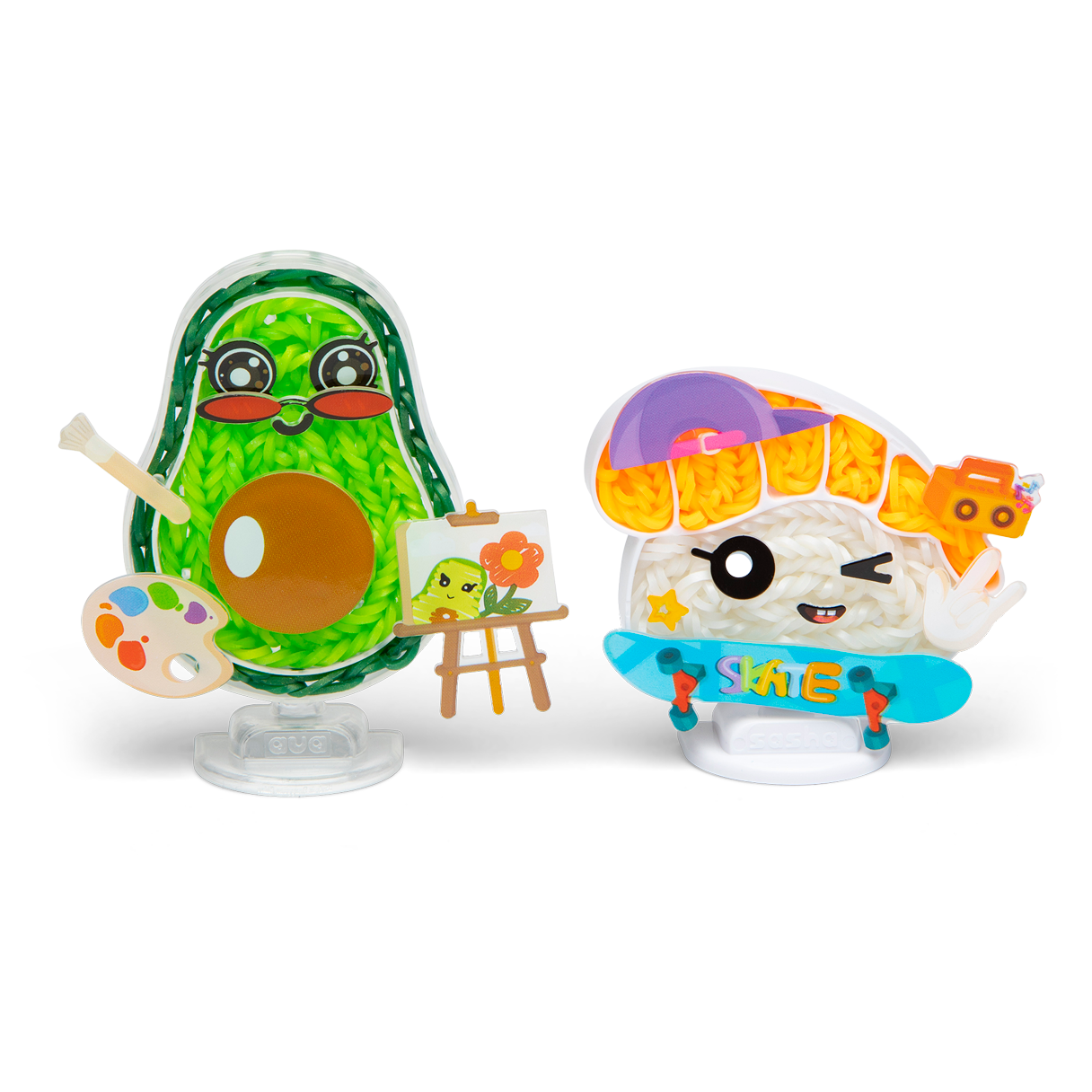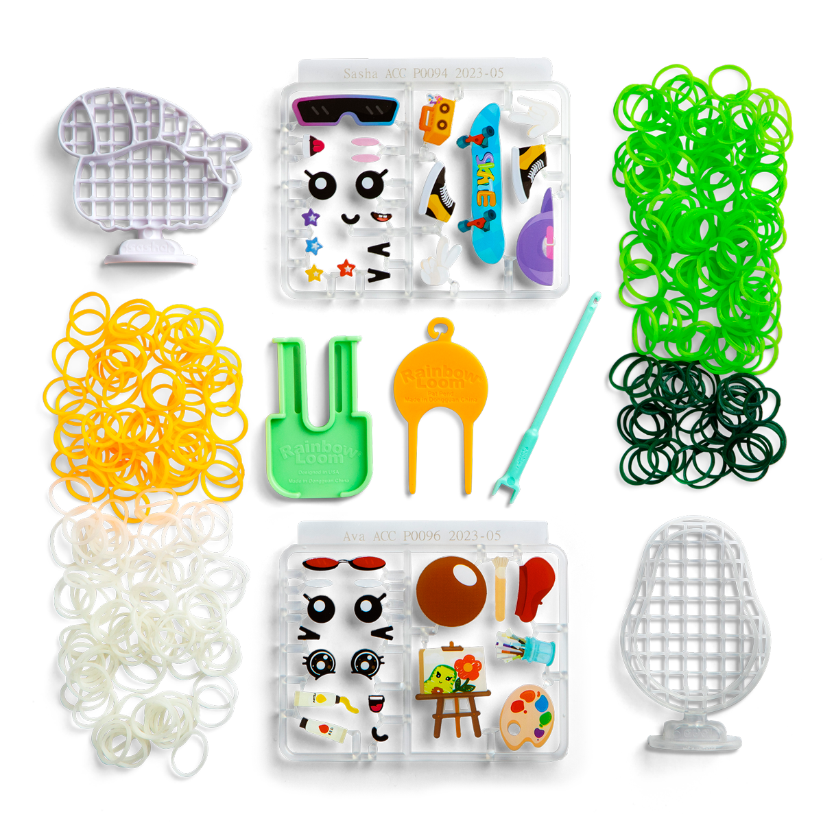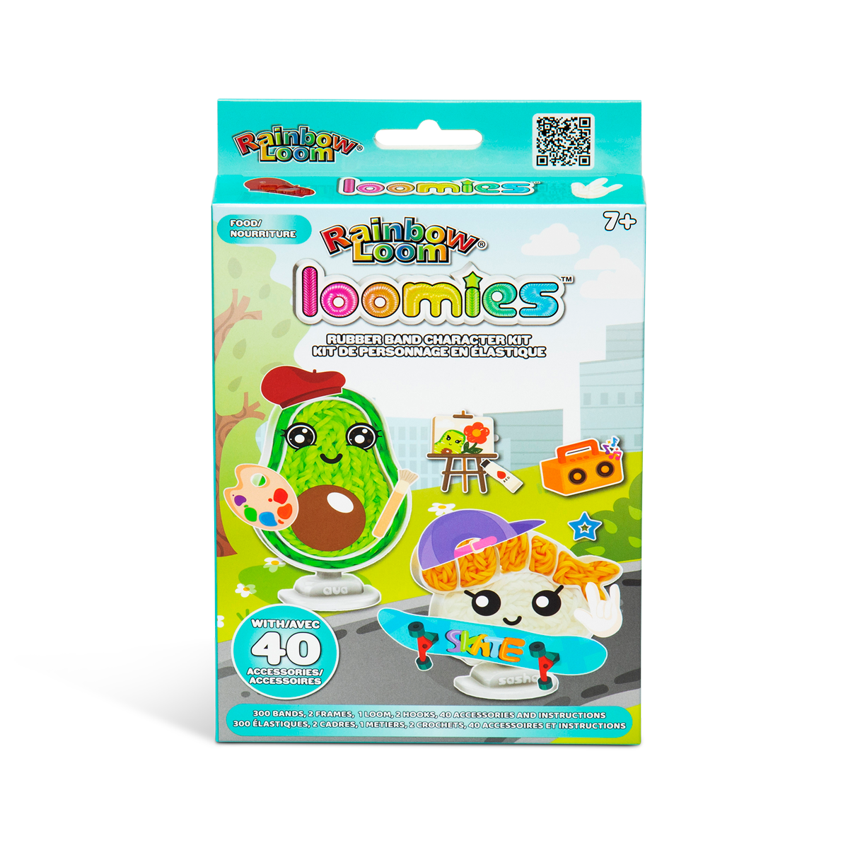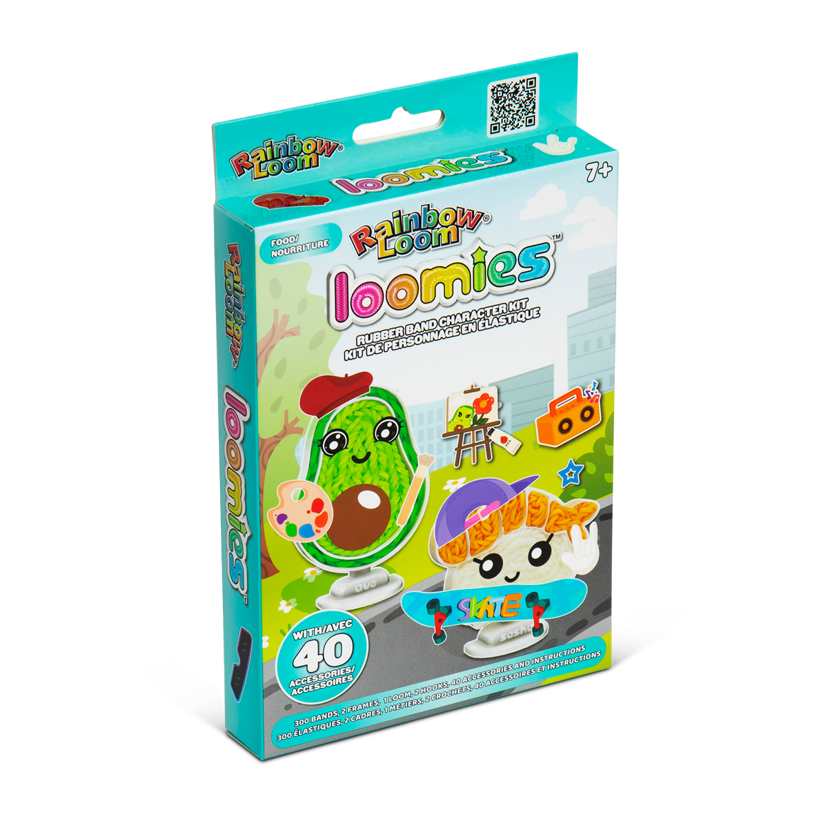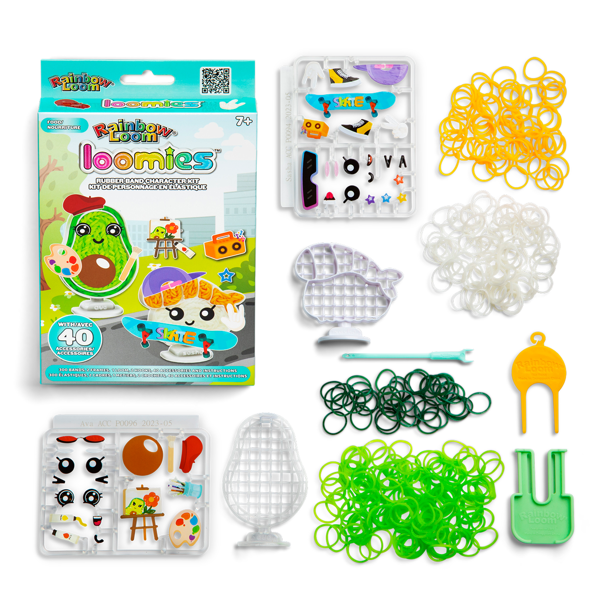Introducing Loomies™! A new collection of adorable DIY Characters from Rainbow Loom™. With just a frame, rubber bands, and easy-to-use tools, you can create your own collectible Loomies™ figurine. Each Loomies™ figurine comes with interchangeable themed accessories allowing you to make a variety of characters. Great for any age, just create, play, and display!